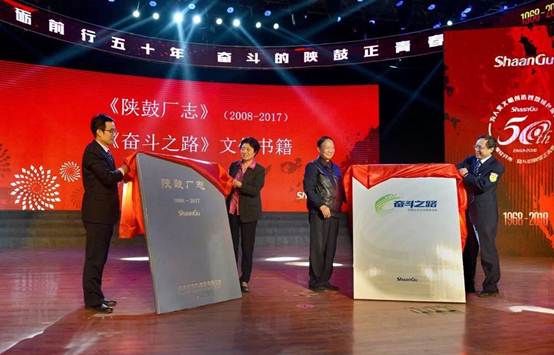 与会嘉宾共同观看了陕鼓记录短片,共同走进了陕鼓从零到今天的发展历程。为了回顾、总结与记载陕鼓50年的发展历程,为未来留下宝贵的发展智慧。陕鼓编发了第四卷厂志,记录了陕鼓2008年—2017年企业发展的点点滴滴。同时,为了强化全员奋斗的文化氛围,公司编撰了记录各个岗位奋斗者典型事迹的文化读本—《奋斗之路》。会上,陕鼓集团常务副总经理牛东儒、陕鼓集团党委副书记王建轩、陕鼓集团原常务副总经理孙继瑞、陕鼓集团原党委副书记王晓玲为《陕鼓厂志(第四卷)》和《奋斗之路》进行了揭幕。