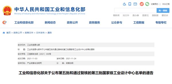 近日,工业和信息化部公布了第五批国家级工业设计中心名单和通过复核的第三批国家级工业设计中心名单。