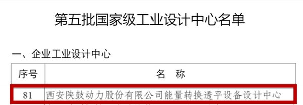 陕鼓动力能量转换透平设备设计中心被评为第五批国家级工业设计中心。