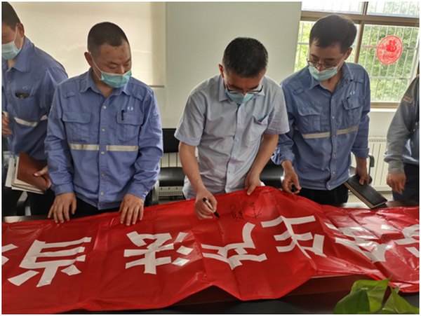 随后,所有参会人员在“遵守安全生产法当好第一责任人”的宣传条幅上签名,切实增强做好安全生产工作的紧迫感和责任感,为全年的安全生产工作提供坚强有力的保障。