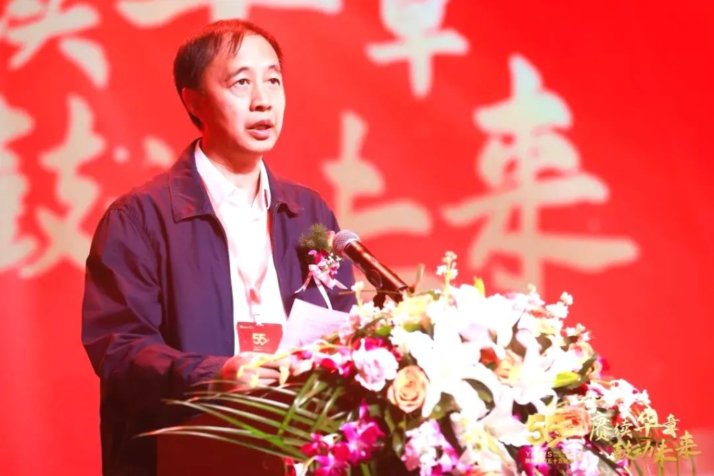 李宏安董事长在致辞中回顾了陕鼓集团五十五年的建设发展和持续转型的历程与成效。他指出,五十五年弹指一挥间,一代代陕鼓人用勤劳的双手和不凡的智慧,书写了敢为人先、艰苦卓绝的创业史;同舟共济、顽强拼搏的奋斗史;忘我付出、实业兴国的奉献史;聚焦用户、持续革新的转型史;自我超越、追求卓越的跨越发展史。陕鼓人一步一个脚印,踏出了一曲铿锵有力的“风之格”。五十五年来,“全心全意为用户服务”的宗旨已成为镌刻在陕鼓人灵魂深处的烙印,激发出陕鼓人从以“我”为中心到“半我”再到“无我”发展境界的转变,释放出陕鼓人以“成就客户”为核心的无限创新和创造本能。特别是2016年第二轮转型以来,陕鼓跳出传统制造业的经营思维和发展方式,聚焦细分领域用户需求及需求变化,实现了从“能量转换领域”到“分布式能源领域”的持续深化转型,并构筑了以分布式能源系统解决方案为圆心,集设备、EPC、服务、运营、产业增值链、智能化、金融七大增值服务为一体的“1+7”系统解决方案,助力全球用户的高质量发展。五十五年来,陕鼓人秉承“为人类文明创造智慧绿色能源”的神圣使命,扎实践行“要为客户找产品,不为产品找客户”的高质量发展理念,深耕“双碳”目标和行业绿色低碳转型发展需求,解放能源,在持续成就客户中,为陕鼓赢得了更加广阔的市场蓝海。