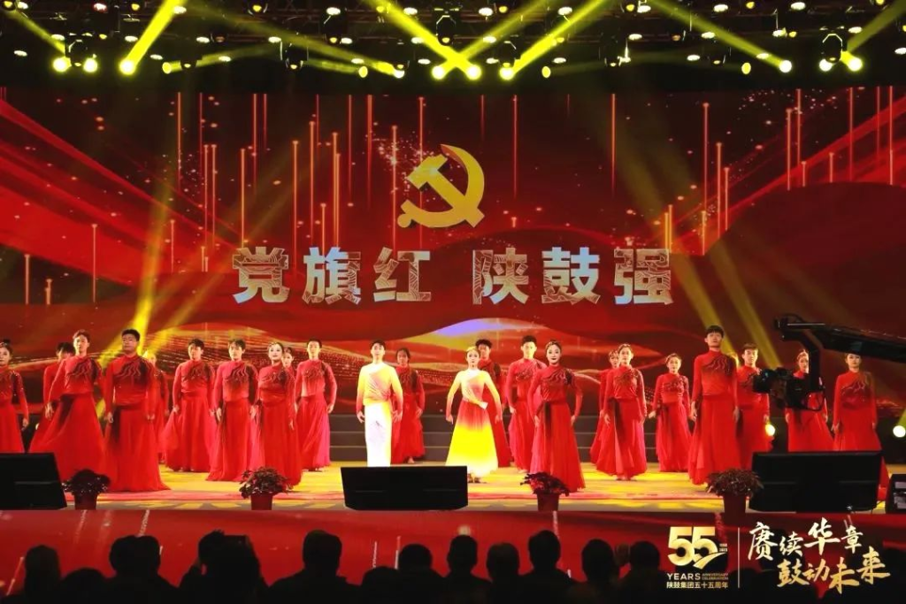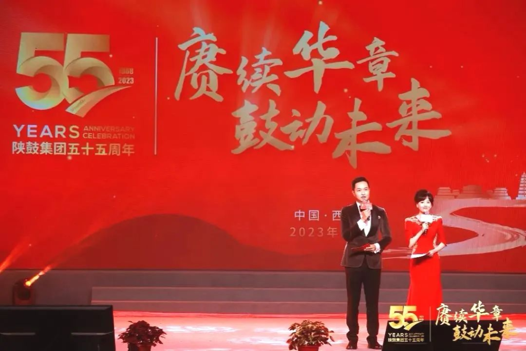 骊山秋色醉长安,渭水扬波叙情缘;五五华诞同庆贺,感恩合作谱新篇。9月26日晚,陕鼓临潼工作区俱乐部洋溢着喜庆热烈的气氛。一场以“赓续华章·鼓动未来”为主题的陕鼓集团建厂55周年庆典仪式在这里隆重举行。