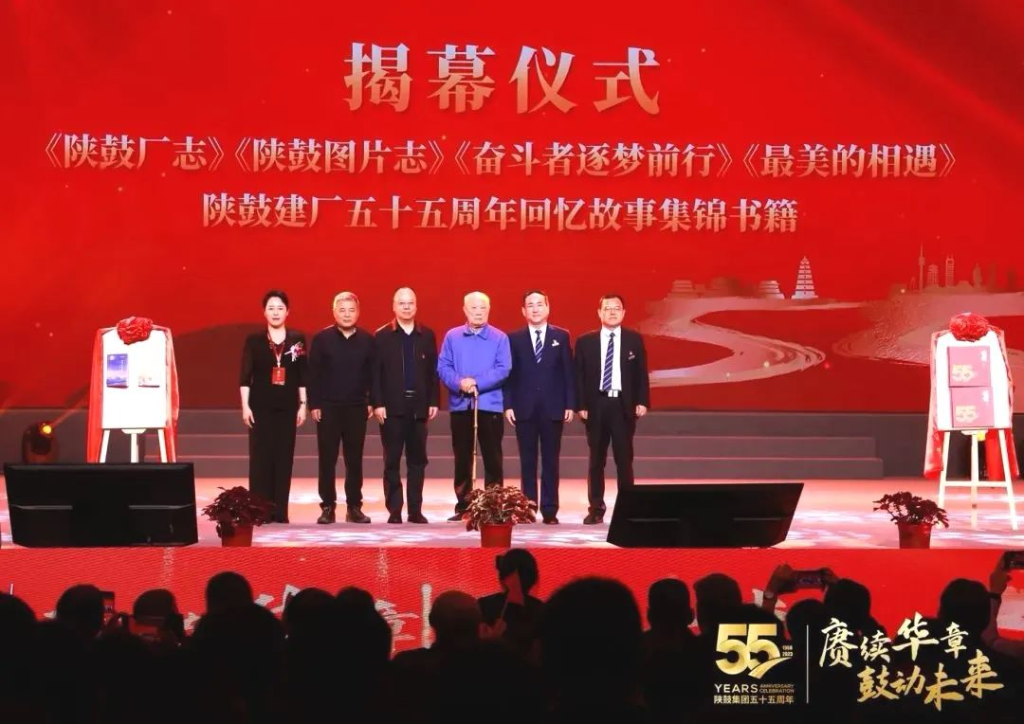 为了回顾、总结与记载陕鼓55年的发展历程,尤其是战略聚焦分布式能源以来的奋斗历程,陕鼓编发了第五卷厂志和图片志。同时,为了强化全员奋斗的文化氛围,公司编撰了记录各个岗位奋斗者典型事迹的文化读本《奋斗者:逐梦前行》《最美的相遇——建厂五十五周年回忆故事集锦》。会上,西安市国资委党委委员、副主任李义长,西安工业投资集团有限公司党委副书记常以卓,陕鼓集团原党委书记、董事长印建安,陕鼓集团原总工艺师周破浪,陕鼓集团党委书记、董事长李宏安,陕鼓动力总经理陈党民共同为陕鼓厂志和书籍进行了揭幕。