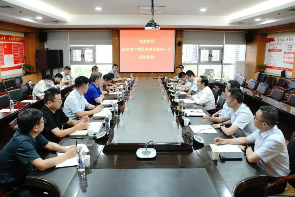 8月2日,扬州市广陵区委书记张伟,扬州市广陵区区委常委、组织部部长杨勇, 扬州市广陵区副区长卢冬,扬州市广陵区区委办主任叶健,扬州市广陵区组织部副部长、老干部局局长薛增国,扬州市广陵区李典镇党委书记陈雨,扬州市广陵区科技局局长李慧平,扬州市广陵区政府办副主任姜涛等一行莅临陕鼓考察调研。